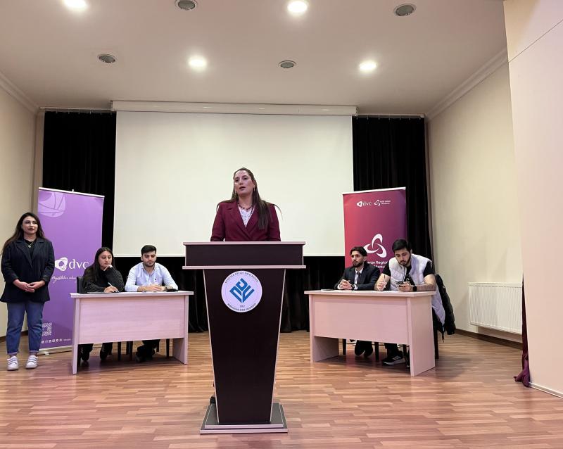 Naxçıvan Dövlət Universiteti və Naxçıvan Müəllimlər İnstitutunda keçirilən təlimlərə 300-dən çox gənc qoşulub. Proqram çərçivəsində iştirakçılara debatın “PD” formatı, çıxışın hazırlanması, arqumentləşdirmə və əsaslandırma, doğru sualın verilməsi, mövzunun araşdırılması və təhlili kimi mövzularda nəzəri və praktiki biliklər təqdim edilib. Təlimlərdən sonra nümunəvi şou-debat təşkil olunub.